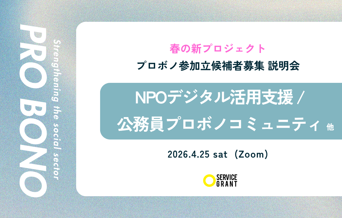 サービスグラントは、日本における「プロボノ」の草分けとして2005年より活動を開始。以来、「プロボノ」は、社会課題解決に成果をもたらす手法として、また、社会参加の機会として、国内外で着実に広がり続けています。