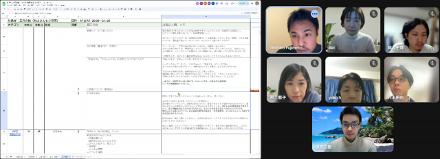 その後は、チーム全員でまとめたヒアリング結果、そこから見える課題と解決の方向性を細かく共有し、NPOとプロボノで議論が続きます。時には、「意味のあるWebサイトリニューアルとする為に、新しいコンテンツが必要」や「患者さんの交流会について、参加しやすい設計が必要」など、スコープから少し発展した意見も飛び交いました。丸山さんが「こうしてNPO関係者の生の声を基に議論できるのは、本当にありがたい」とコメントがあったように、ふじもん、はるちゃん、あきこさん、せんちゃん、あいこさん、やぎちゃんが、チーム全員で集めた意味のある素材が議論を触発し、あっという間に3時間(途中休憩15分)が過ぎました。
