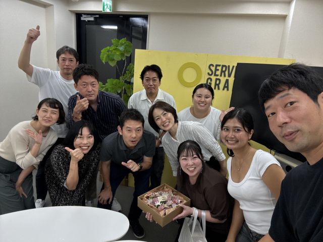 代表の内山順子さんの来日タイミングでリアルでプロボノ全員集合!鹿児島からも東京へご参加いただき、インターンのホノさんや卒業生のジャネットさんへのヒアリングも途中3テーブルにわかれてでき、英語と日本語、お酒と食べ物入り混じる懇親会ができました。普段オンラインで効率は良いのですが、対面ができてよかったです。メンバーの1人が翌週結婚式で、お祝いもできました!