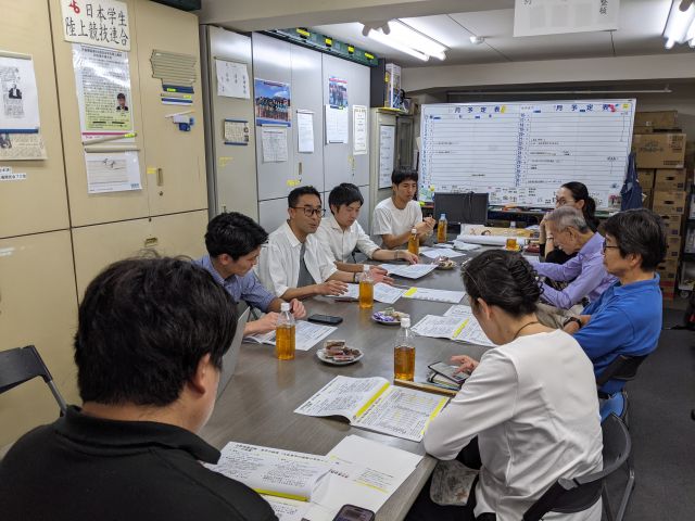 団体の事務所にて、団体役員や学生幹事の方へ団体の運営や資金調達の状況について詳しくお話を伺いました。団体の複雑な運営や学生さんたちの想いに触れる貴重な機会となりました。今後、さらに関係者の方などへのヒアリングを進めていきます。
