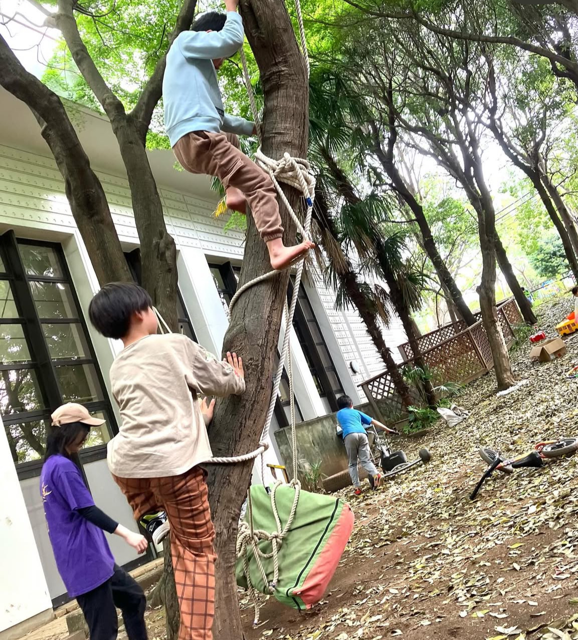 遊びに来た子どもたちは心おきなく体を動かし、思い思いに遊びます。午前中は小さなお子さん連れが多く、午後になるとだんだん大きな子ども達が増えてきます。年齢によって遊びは進化し、大きな子も小さな子も縦横斜めの関係の中で、あるときはお兄さんお姉さんを発揮したり、小さな子が絡んだりする姿が見られます。あそぶことを通して、自然に大きな関係づくりも生まれています。