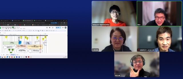 本日もオンラインでチームミーティングを実施しました。takaさん、ミホさん、かしまさん、ぬまぴさんが参加し、マニュアル完成までの段取りを改めてすり合わせました。