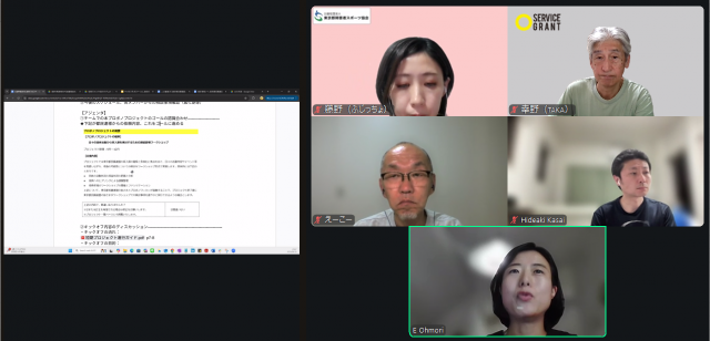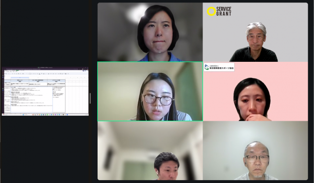 定例ミーティングで、ヒアリングの質問項目のまとめと個別ヒアリングの日程調整を行いました。ステークホルダーごとに、より団体の活動を理解するための質問をチームメンバー全員で検討し、日程が決まり次第個別にヒアリングを開始します。